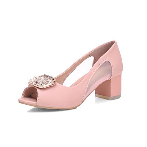 If you want to buy AllhqFashion Women's PU Solid Pull-on Peep Toe Kitten-Heels Sandals, Pink, 43 safely and comfortably please click on the button below: